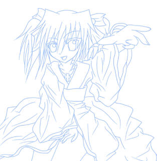 これがベースとなって色が塗られていくワケよ。どうでもいいんだけど、俺の場合、目→肌→服→髪っていう一定のプロセスで塗るんだよね。別にこのプロセスにコダワリがあるわけでもないけど、なんつーか自然にそういうプロセスが確立してきたクンカクンカ。