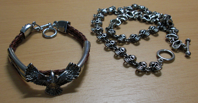 フェニックス・ブレスレット(1500円くらい)とドクロちゃんブレスレット(2000円くらい)。