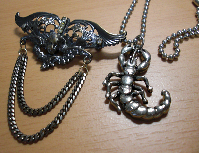 なんかスゴいクリエイティブなブローチ(1000円くらい)とサソリたん(1300円くらい)。