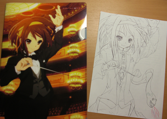 これは前アニメイトで買ったクリアファイルだよ♪長門のとセットだった。長門のほうは使ってない。俺どっちかっていうとハルヒ派なんだよね。だから長門はお前らの嫁で全く構いません。どうぞどうぞ。