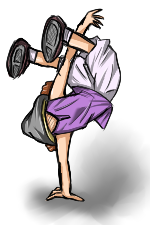両手で逆立ちして左手を地面から離すってのがレヴェル高いぜ。